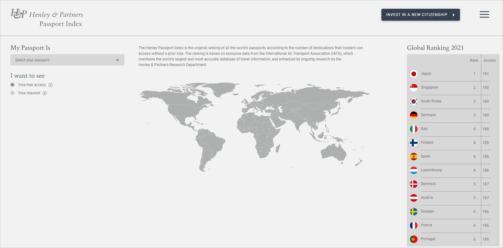 영국의 국제교류 컨설팅회사인 '헨리 앤 파트너스'는 국제항공운송협회(IATA) 데이터를 기반으로 헨리 여권 지수를 발표하고 있다. 헨리 여권 지수는 사전 비자 없이 갈 수 있는 국가의 수에 따라 국가의 여권 파워 순위를 매긴 것인데, 올해 2021년 발표한 헨리 여권 지수 순위에 따르면, 비자 없이 전 세계 191개국을 방문할 수 있는 일본이 1위이다. 그 뒤로 싱가포르 여권이 190개국, 189개국을 방문할 수 있는 한국과 독일 여권이 공동 3위에 올랐다. 특히 전통적으로 여권 파워가 강했던 미국과 영국은 코로나 19 확산이 심각해 여행이 제한되고 있다고 밝혔고, 이번 집계에서 영국과 미국은 각각 185개국을 방문할 수 있는 7위에 그쳤다.